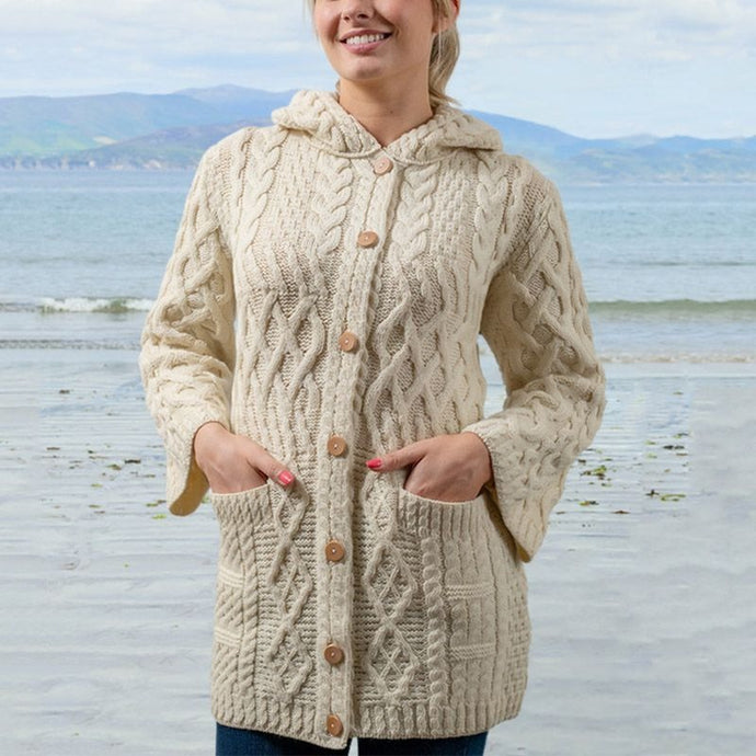 Women's Aran Pattern Long Hooded CoatiganWomen's Aran Pattern Long Hooded CoatiganNo reviews