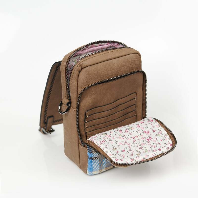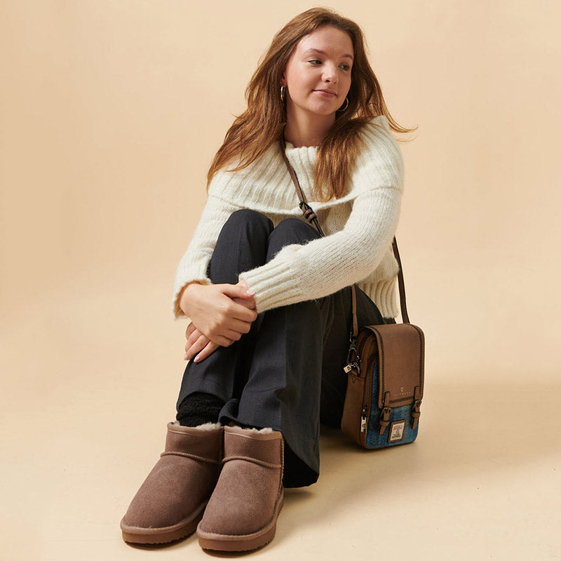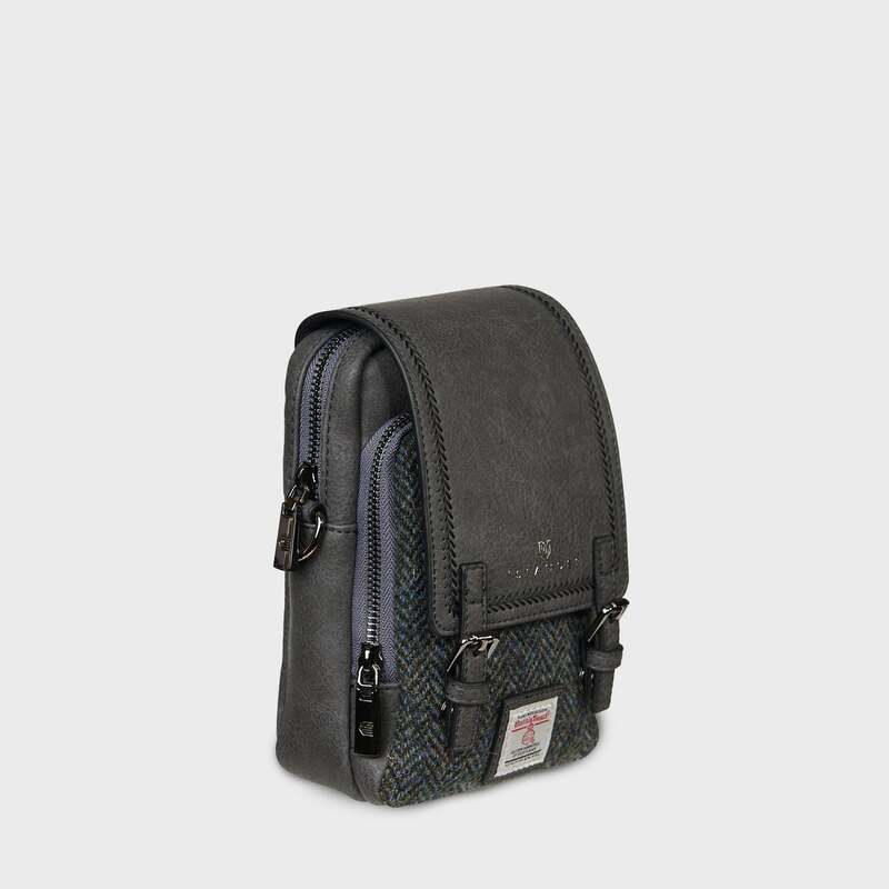 Our Baby Jura Harris Tweed Crossbody Bag combines Scottish tradition with a modern, practical design. It’s made from authentic Harris Tweed, which is handwoven from pure new wool in the Outer Hebrides of Scotland. Each piece has the official Harris Tweed Authority label, proving its genuine craftsmanship. The tweed is naturally durable and moisture-resistant, so it's ready for everyday use. The bag is trimmed with microfiber leather, which looks great with the traditional tweed. You can choose from tartan or herringbone patterns. This bag (7.9" x 5.1" x 3.5") is small but cleverly designed. It has two main compartments with secure zippers and flap closures. One compartment even has built-in card slots. There’s also a concealed zip pocket on the back for small items. With an adjustable, detachable strap (42.12"–50"), it can be worn crossbody or over the shoulder.