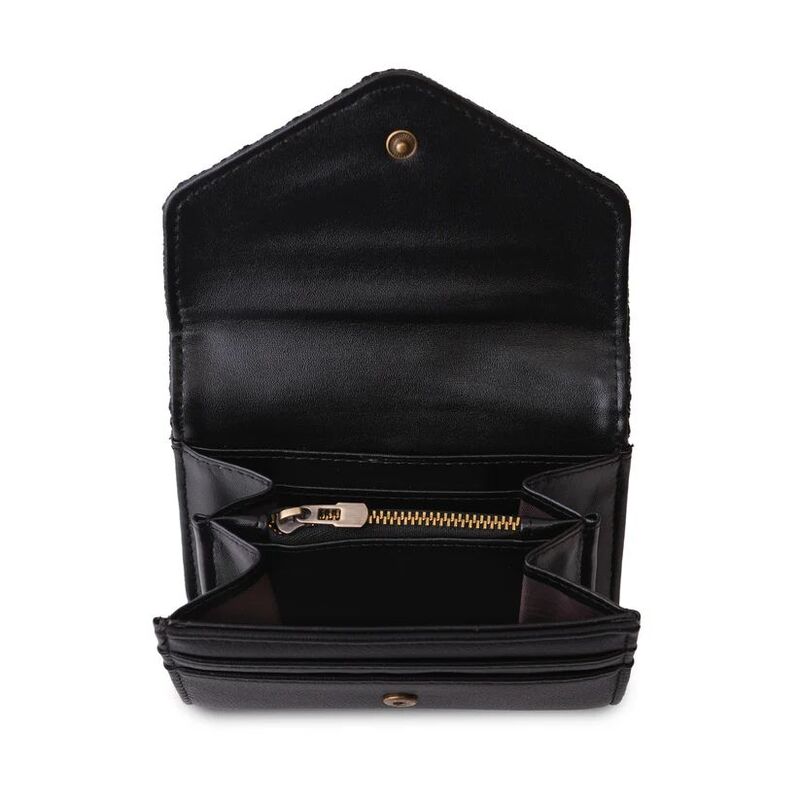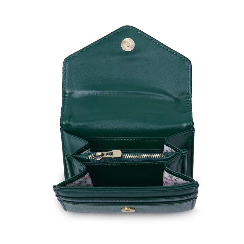 Measuring about 5.11" L x 3.54" H x 1.57" W, this harris tweed and leather wallet has a secure metal popper closure. Inside, you'll find two compartments (one with a zip for coins, and another for notes) plus two card slots. There's even an exterior zip pocket and card slot for quick access to your most-used cards or cash.