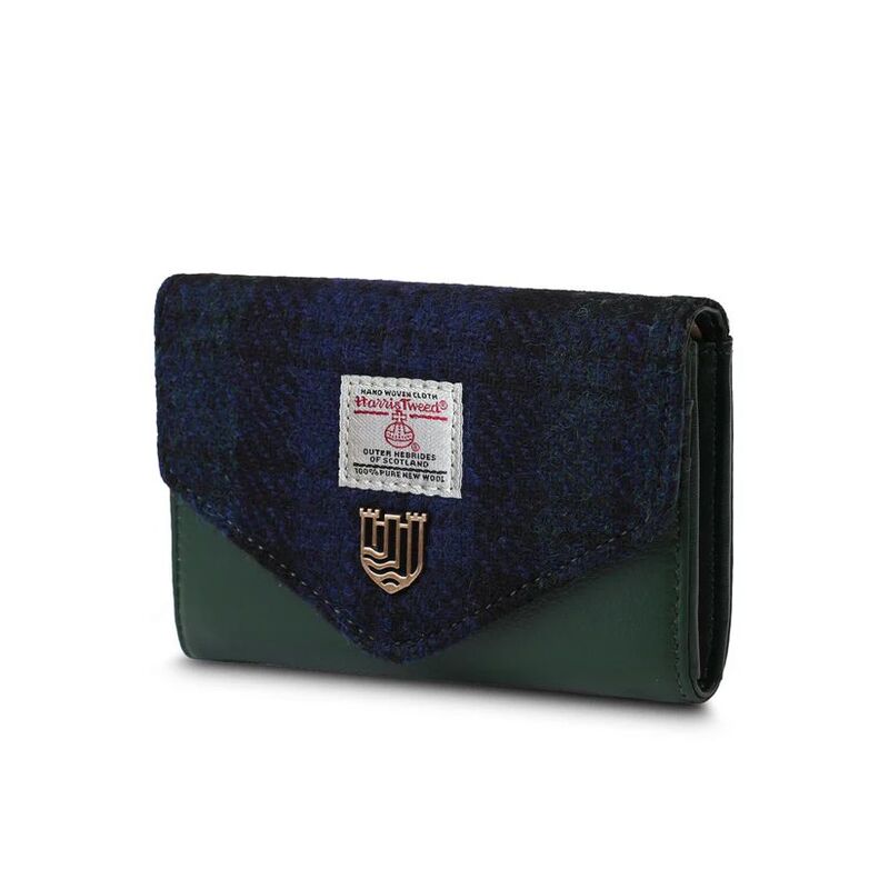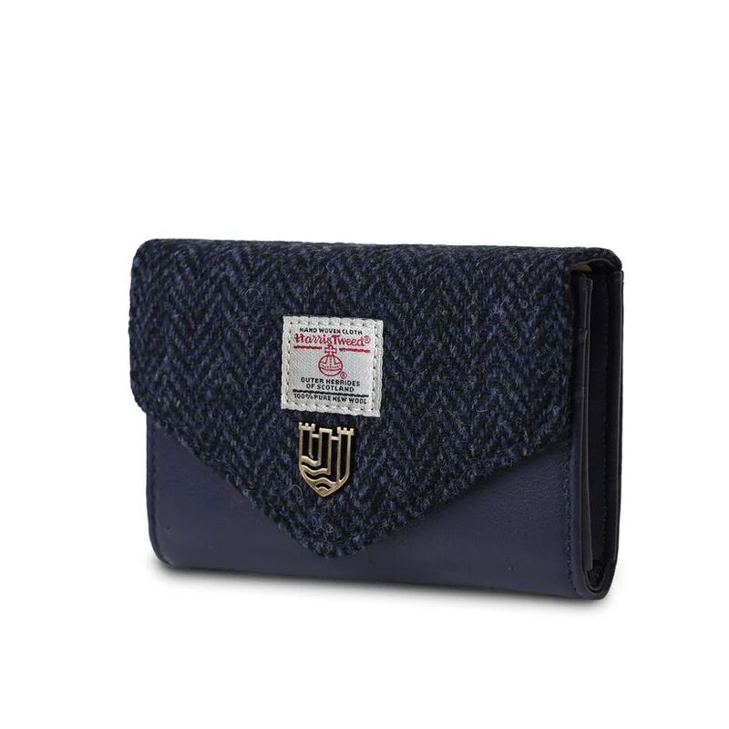 Take a look at our Ladies Harris Tweed & Leather Mini Wallet, a practical accessory with a lovely touch of Scottish charm. This wallet is made from genuine Harris Tweed, which is handwoven in the Outer Hebrides and certified by the Harris Tweed Authority—so you know it's authentic. And as you know, genuine Harris Tweed is incredibly durable and resistant to moisture, so this wallet will be a part of your collection for a very long time! It's also got durable microfibre leather trim to make it extra strong, perfect for using every day.