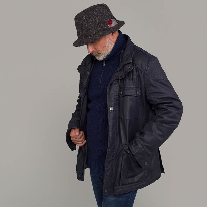 The design is rooted in Irish tradition, inspired by the hats worn by farmers for generations. But this one’s been thoughtfully updated, with a structured body and a gentle brim that slopes down just enough to shade your eyes and keep you dry. The shape is flattering without feeling fussy, and the soft brim means it’s comfortable from the start. A little feather tucked into the band adds a quiet touch of personality. And when paired with something like our Men's Merino Wool Heavyweight Cable Knit Sweater, it pulls your whole look together without trying too hard.